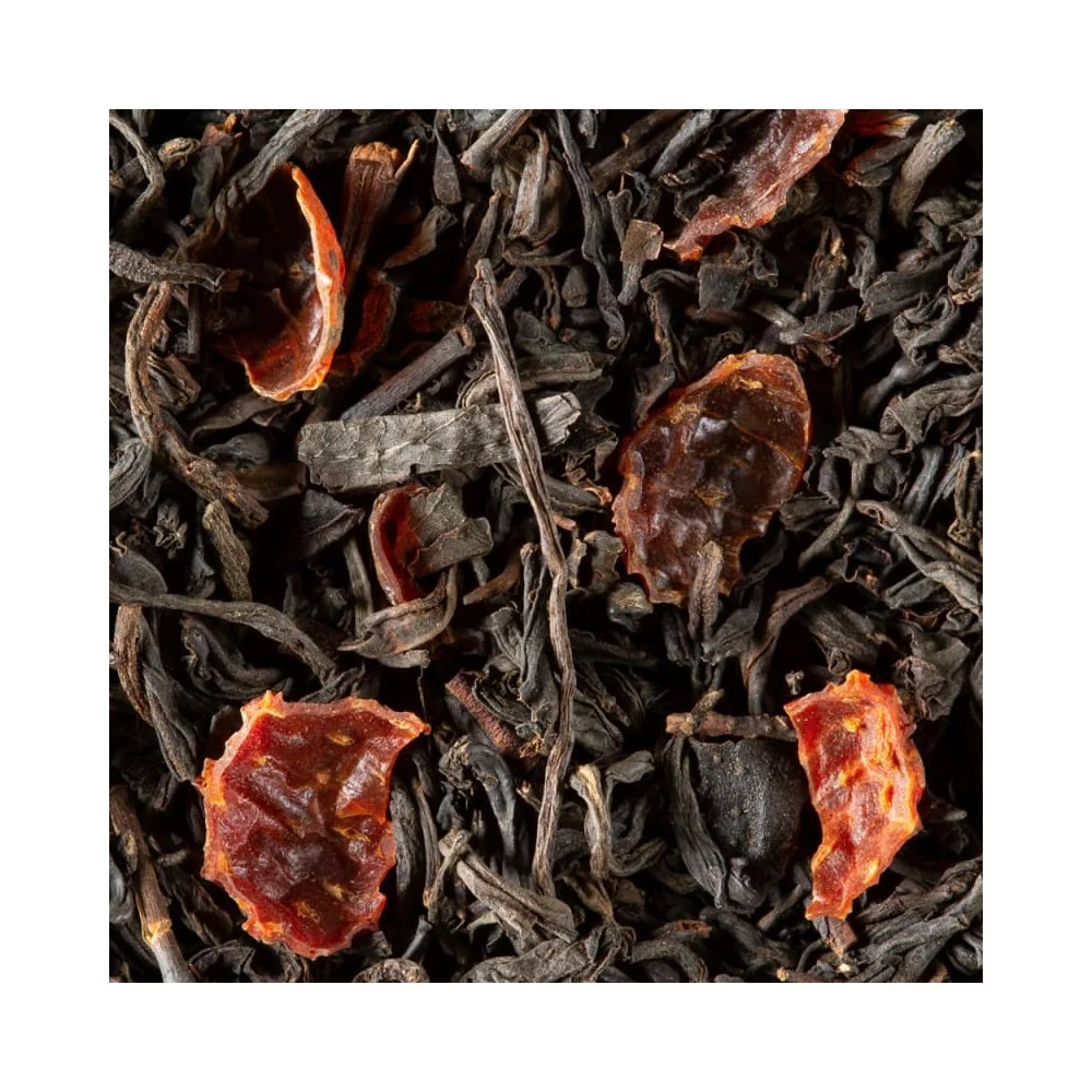 Thé noir (Camellia sinensis), écorces de cynorrhodon, arômes (caramel, chocolat).