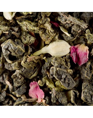 Thé Oolong (Camellia sinensis), pétales de fleur, arômes (aubépine, aloé vera-rose-jasmin, fleur de prunier, melon, acacia).