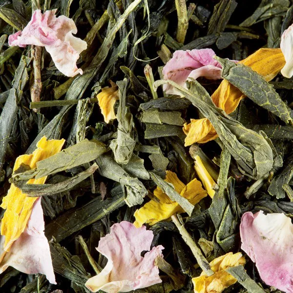 Thé vert (Camellia sinensis), pétales de fleur, arômes (fleurs de pêcher, pêche).